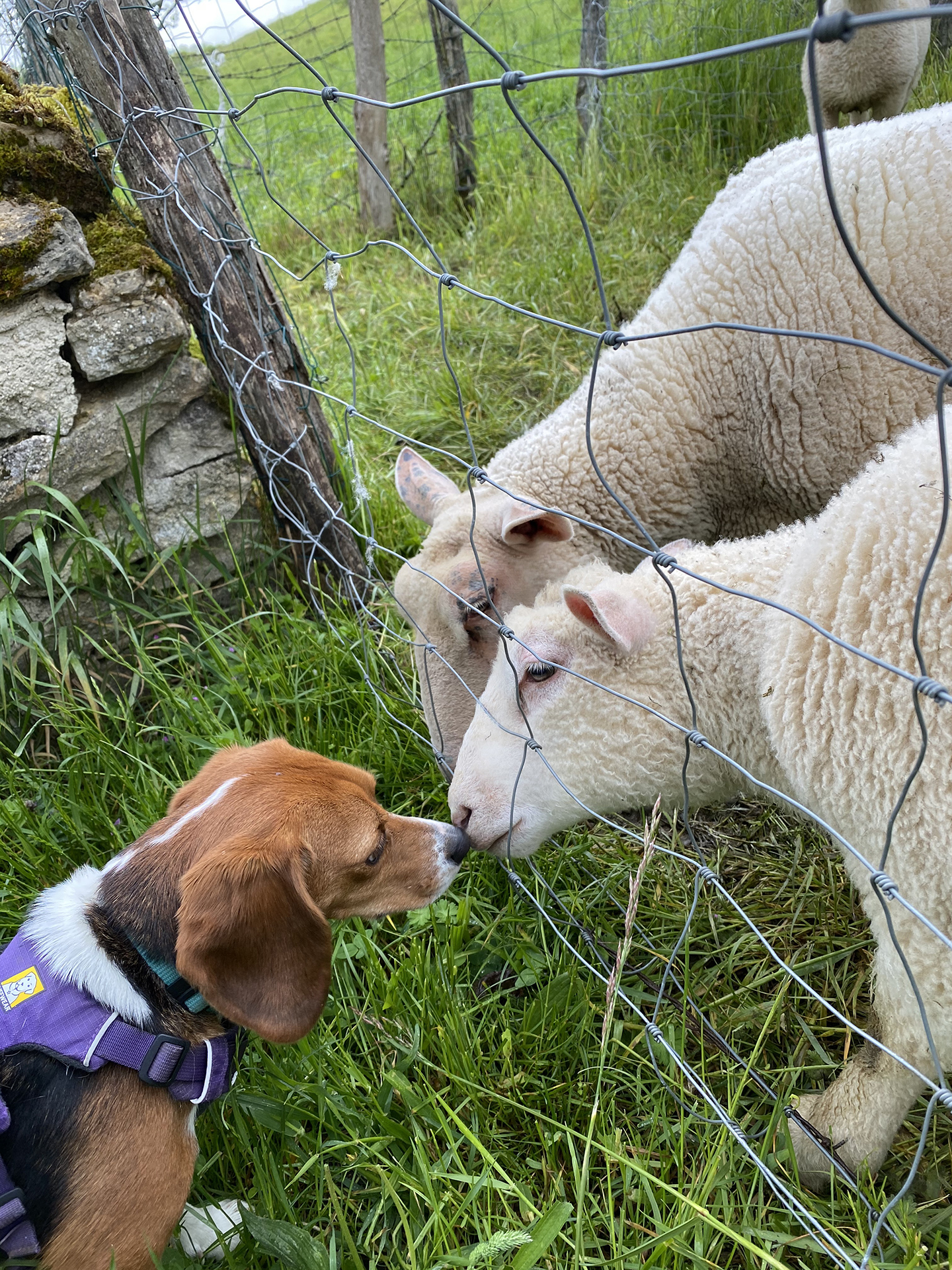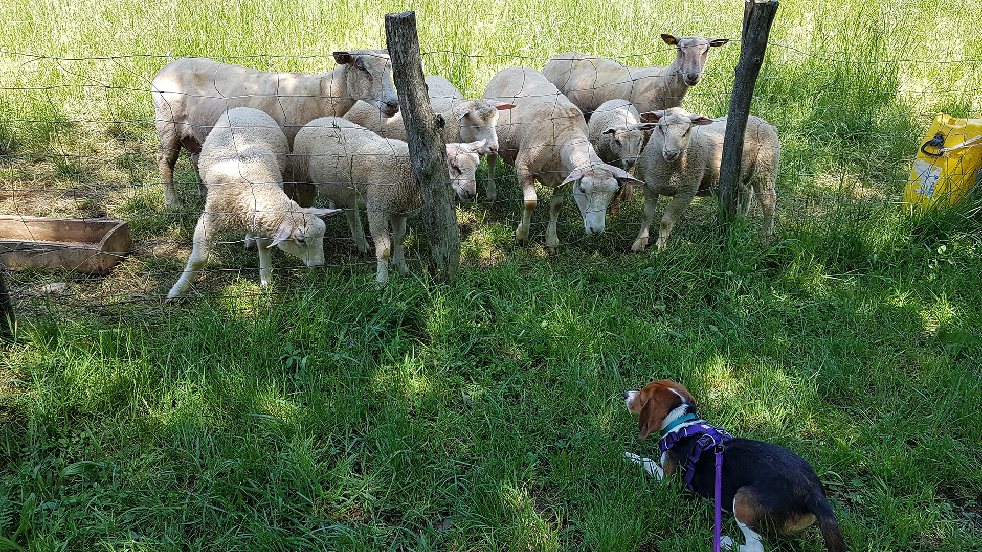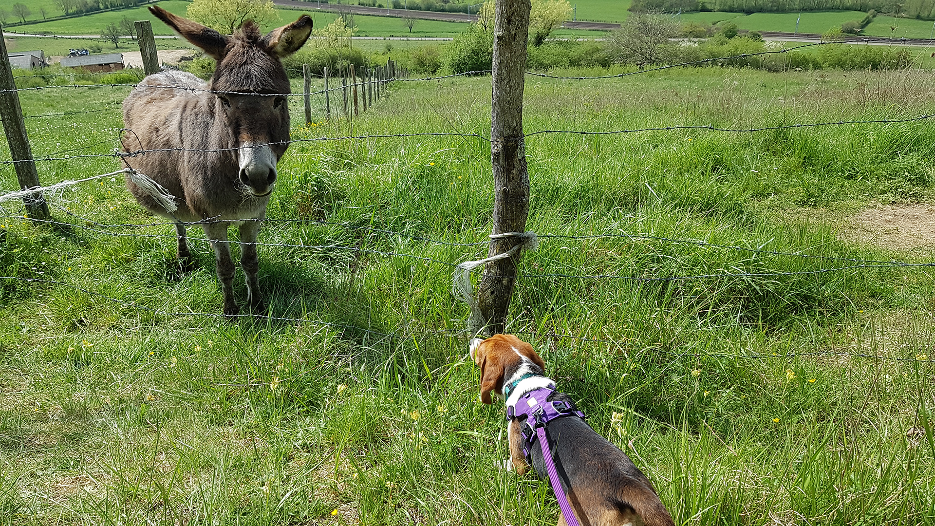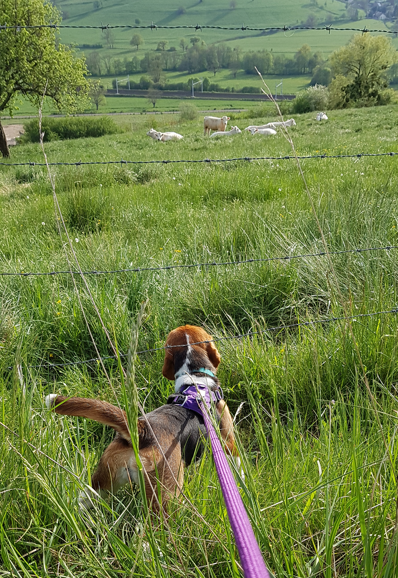Apprenez-lui à venir au rappel et privilégiez la marche en laisse libre. Ainsi votre beaglou pourra renifler toutes les odeurs qui lui semblent intéressantes et vous, vous aurez l’esprit tranquille. Attention, la marche en laisse libre ne signifie pas pour autant que votre attention doit diminuer. Vous devez pouvoir réagir immédiatement en cas de danger, en cas de croisement d’un véhicule par exemple, et de même, vous devez pouvoir contrôler votre animal en cas de rencontre avec d’autres animaux, des enfants, etc. Une laisse de 3 à 5 mètres permet à Kali de naviguer selon son bon plaisir sans me faire tomber tous les trois mètres car, comme tous ses congénères, elle a une fâcheuse tendance à marcher en zig zag. Vous pouvez également partir avec une longe de 10 mètres qui vous permet de faire courir votre animal en toute sécurité lorsque vous vous trouvez dans un pré.
